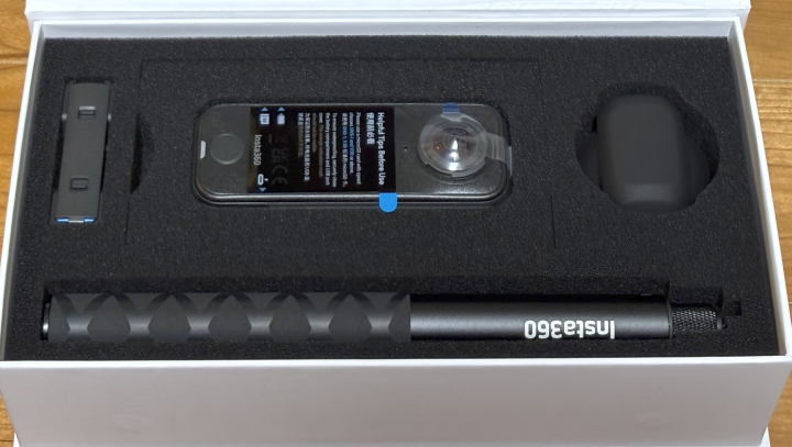 そのスターターパックです。パックには、予備バッテリー、見えない自撮り棒、レンズキャップが入ってました。とりあえず使うにはこれでいいのかな?って思いました。
