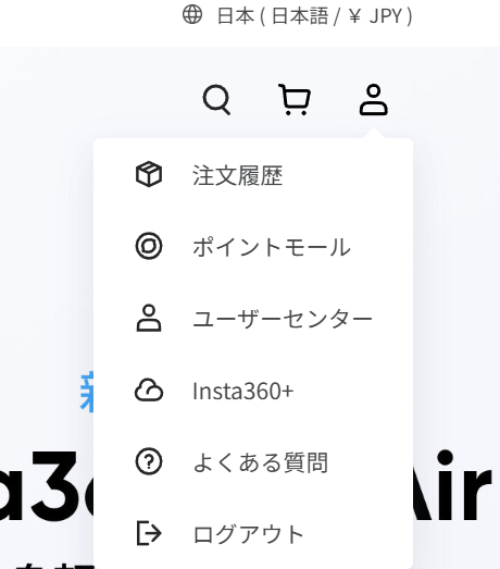 Insta360 Storeの右上の人アイコンの上にカーソルをもっていくと、Insta360+のメニューが現れます。